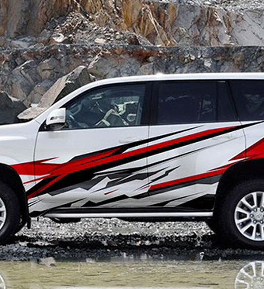 2- استیکر را بر روی بدنه و جایی که میخواهید نصب کنید بگذارید و با یک چسب کاغذی آنرا بر روی بدنه فیکس کنید .